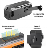 - Ingebouwde powerbank (2000mAh): laad je smartphone op via USB of USB‑C in noodgevallen.